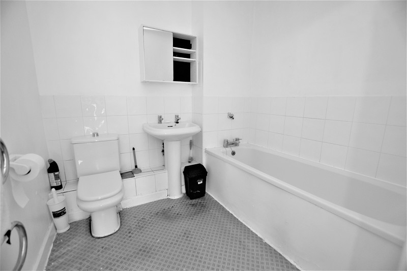 Three piece suite comprising panelled bath with mixer taps, wash hand basin, low level wc