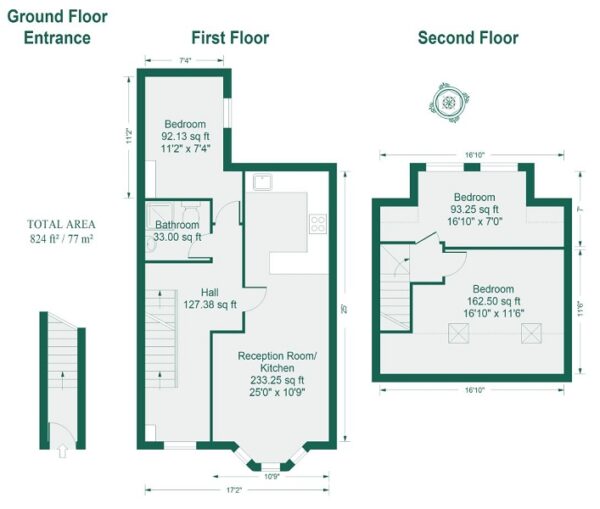Inner Hallway (9' 4" x 5' 9" or 2.84m x 1.75m)